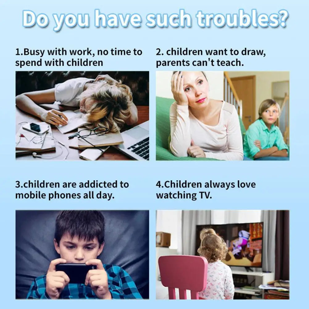 Easy to use: Have fun without any complicated Settings or applications. Our drawing robot has a simple design and user-friendly features to get kids started right away. Explore topics from the world to modes of transportation with 100 different drawing cards, 2 pens and 12 colored pens.